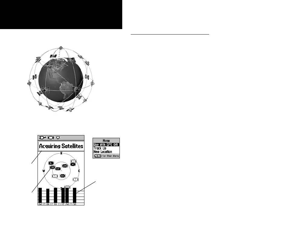 When you turn on the GPSmap 60, the GPS receiver begins to search