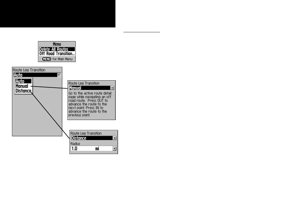 3. Highlight the Route Leg Transition field and press