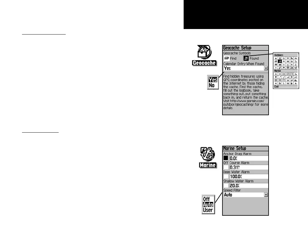 The Marine Setup Page allows you to activate alarms for maritime