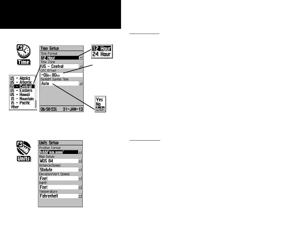 Daylight Savings Time offers choices of “Yes,” “No” and “Auto.”