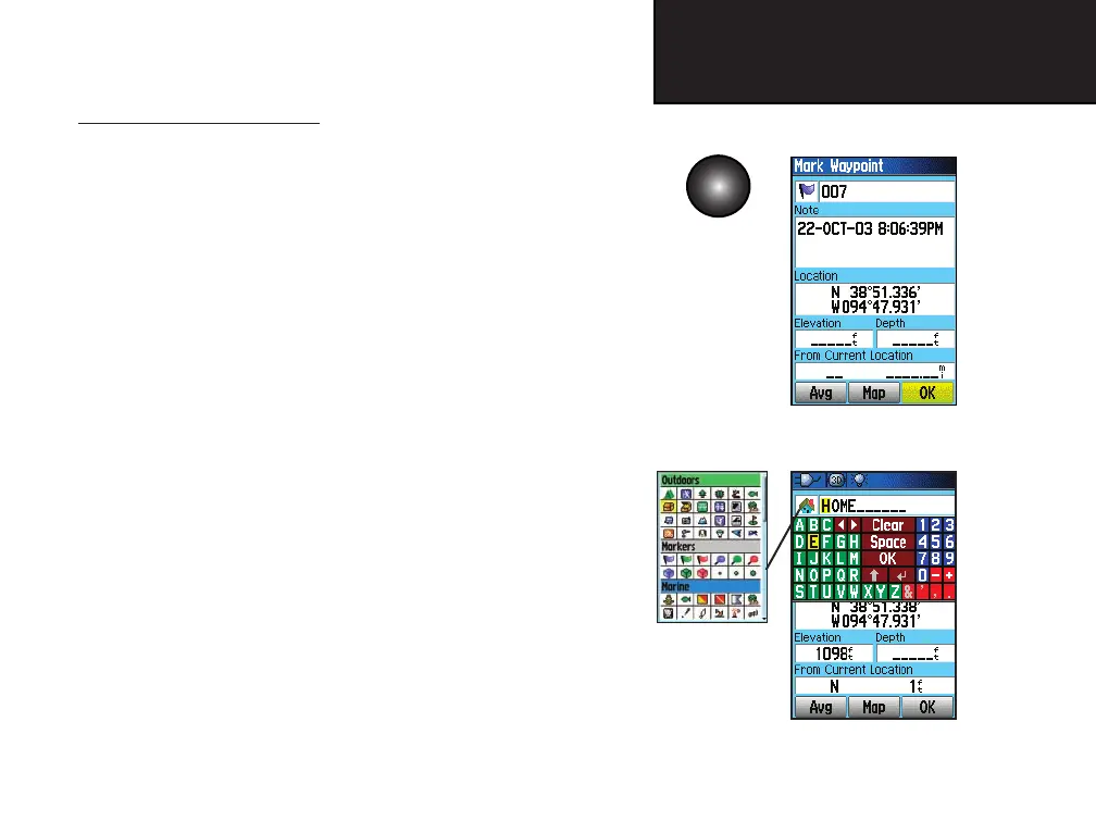 1. Press in and hold the MARK key until the Mark Waypoint Page