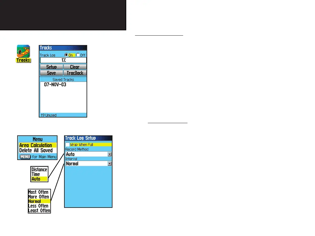 3. Beneath the Track Log fi eld are four on-screen buttons to: