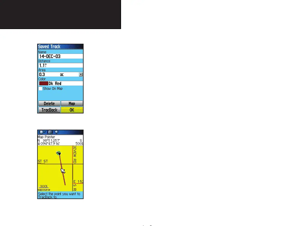 5. To exit a TracBack, press the MENU key and select “Stop Naviga-