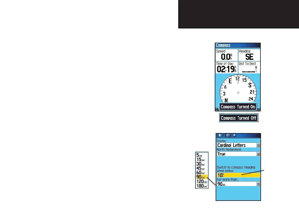 Compass On, the GPSmap 60CS overrides the Compass and uses the GPS