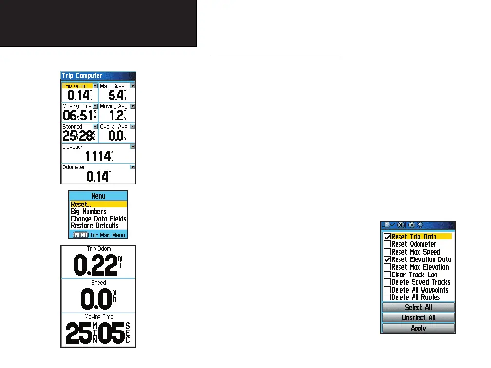 The Reset Page offers options for resetting trip