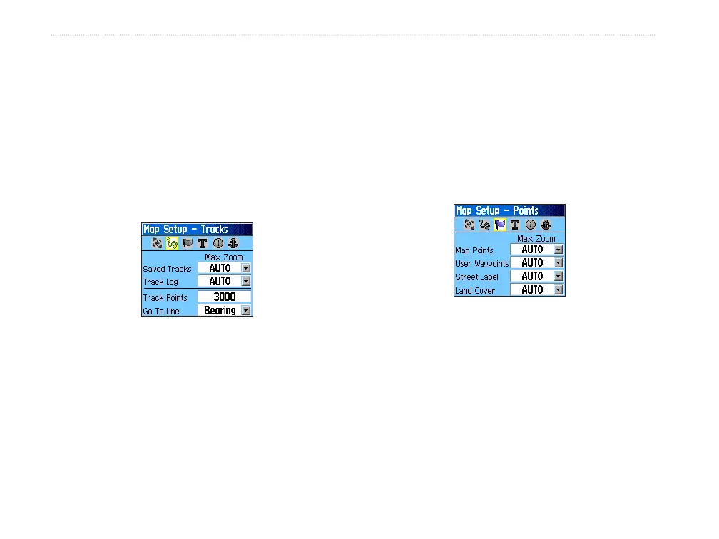 The Map Setup – Tracks Page contains settings for