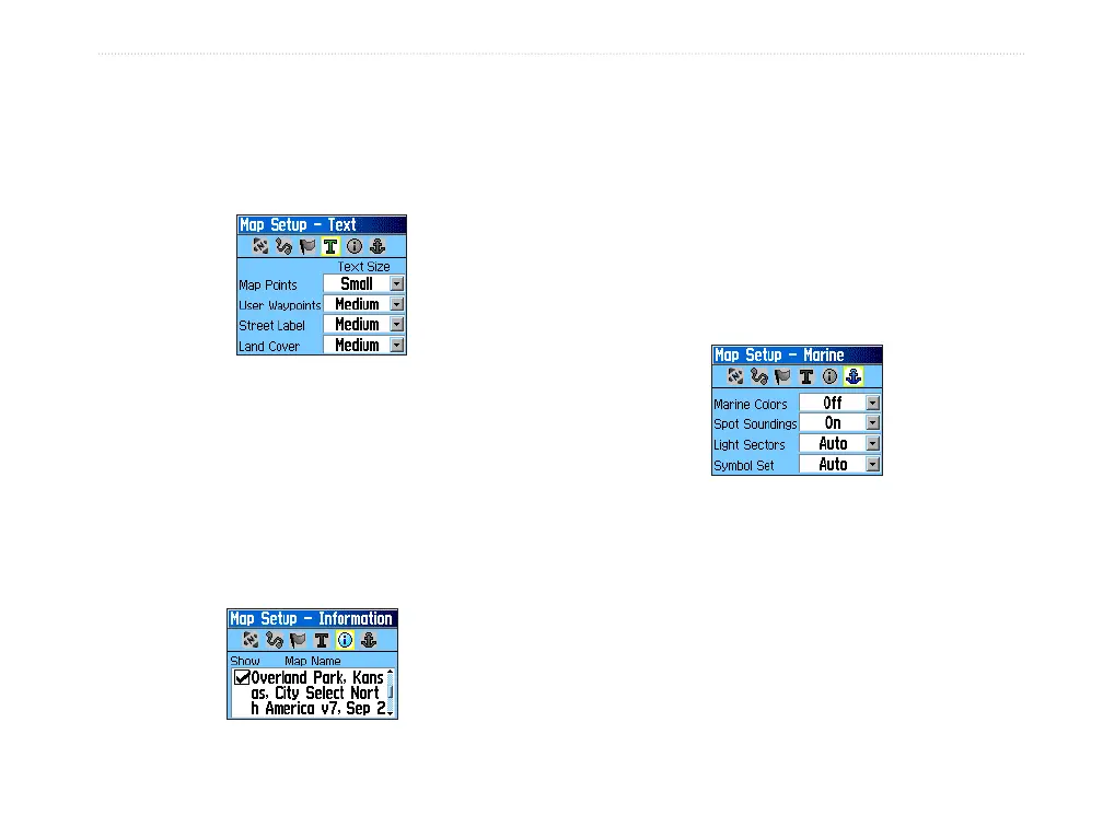 Use the Map Setup – Text Page to select the text size