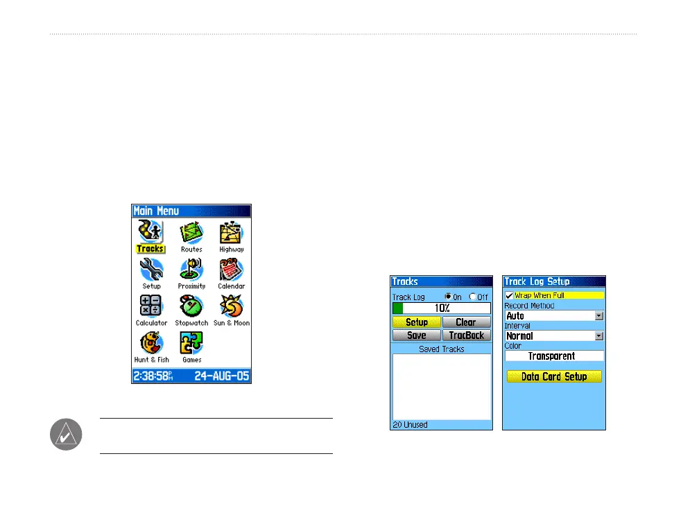 Tracks Page to set up, clear, or save a track log, or