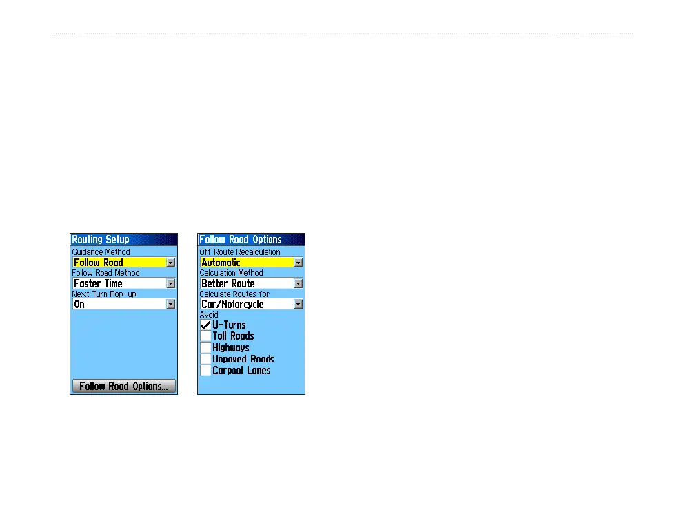 • Guidance Method—sets the unit to calculate