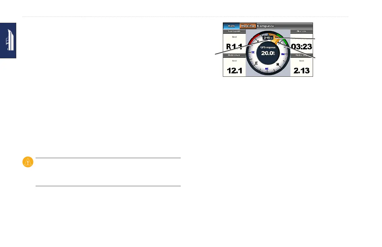 visuaalisia merkkejä ja ohjaa siten, että vältät maa-alueet, matalat