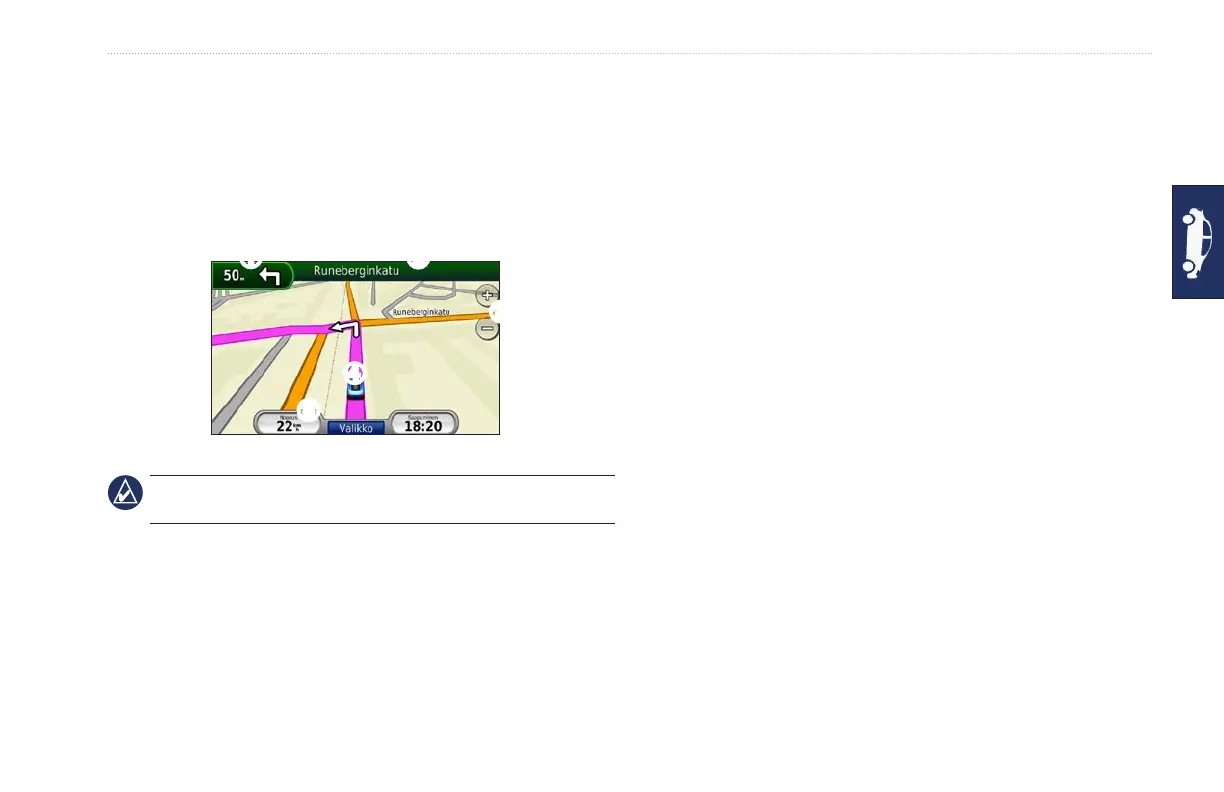 Kun navigoit reittiä, seuraavan käännöksen sivulla näkyy risteys,
