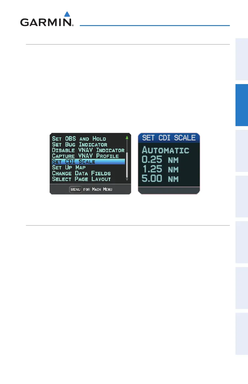 Turn or move the FMS Joystick to highlight ‘Set CDI Scale’, and press the