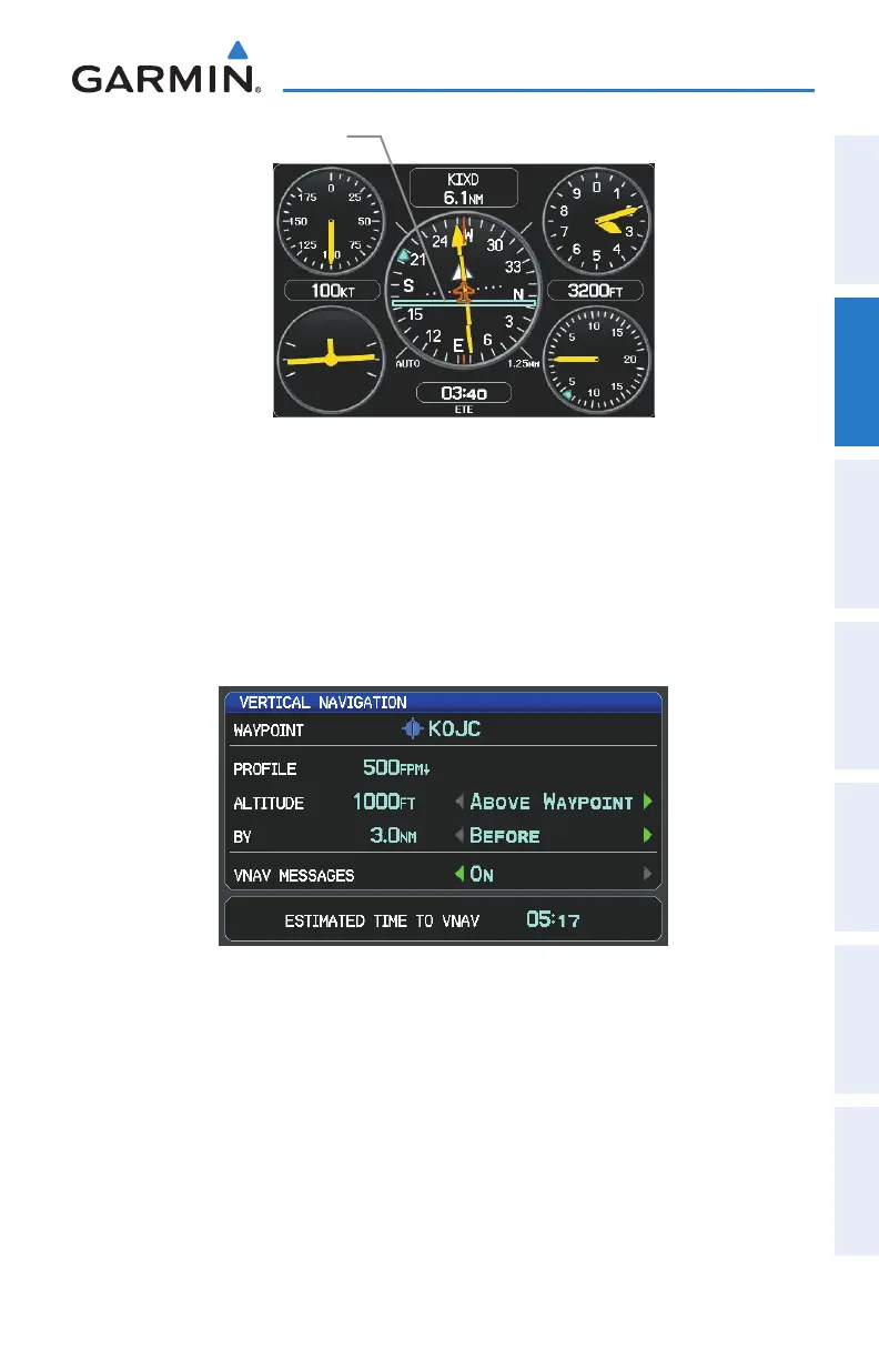 Turn the FMS Joystick to select the Vertical Navigation Page.