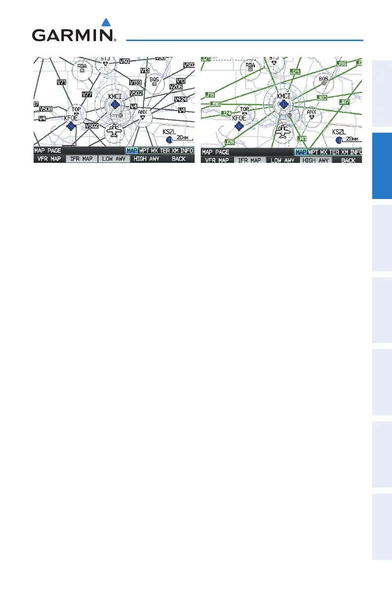 Airways may be displayed on the map at the pilot’s discretion using the MAP Softkey
