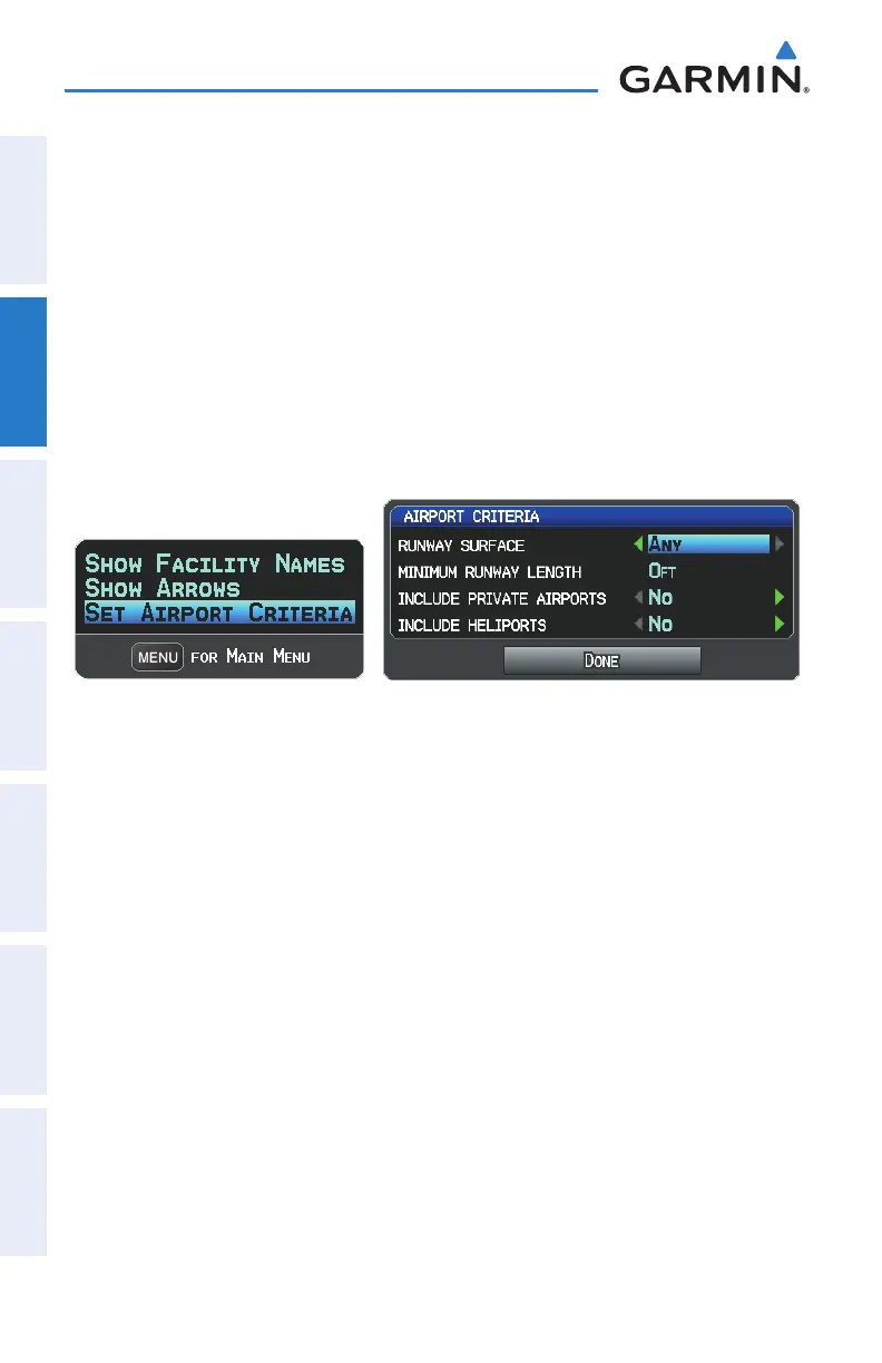 Press the ENT Key. The Airport Criteria Window is displayed.