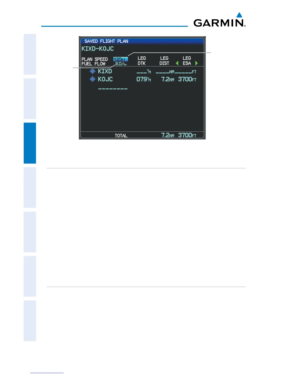 Plan Speed and Fuel Flow (Saved Flight Plan Page)