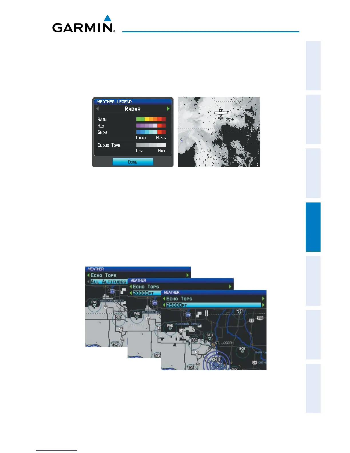 5,000 foot increments up to 70,000 ft. Echo Tops can be helpful in determining the