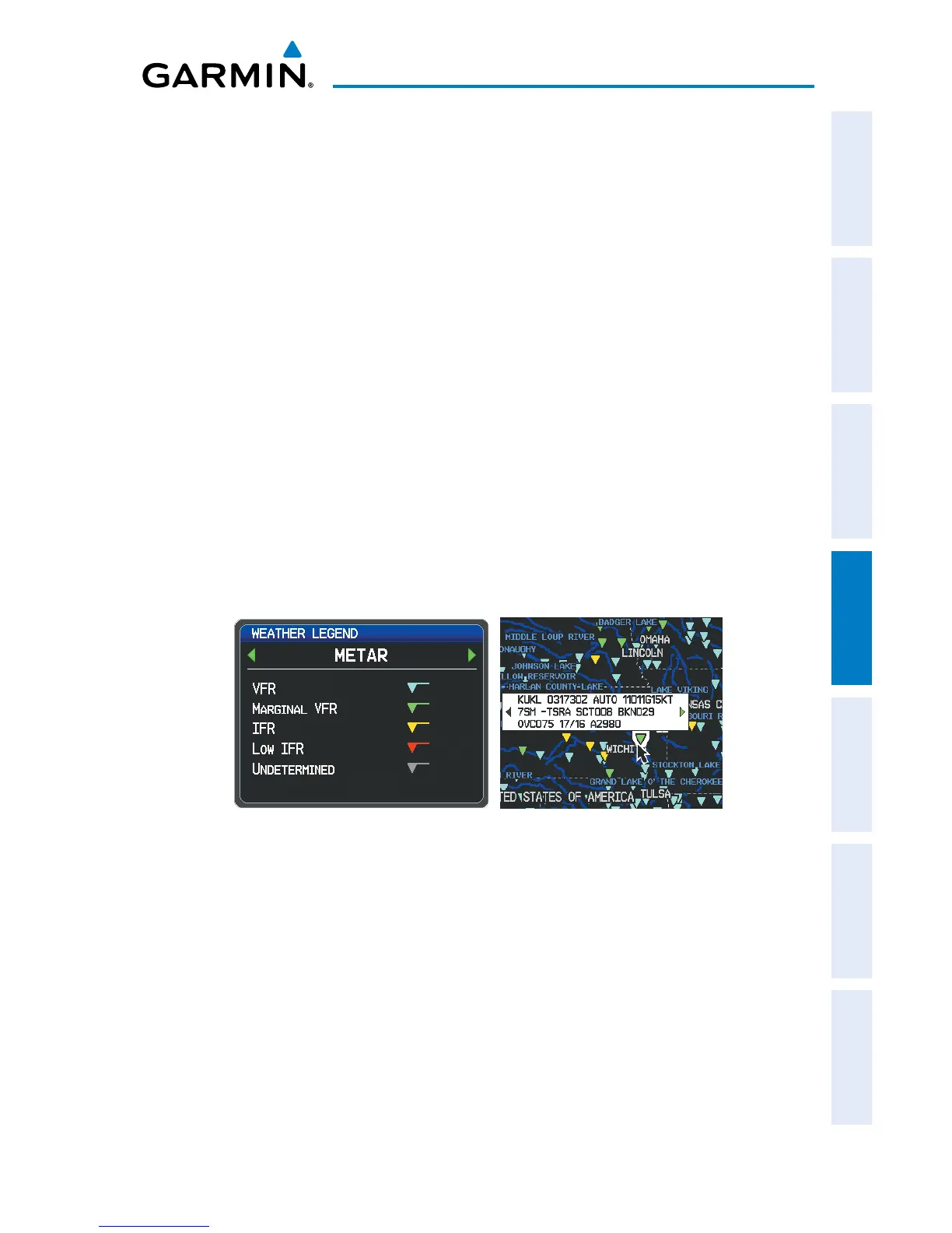 METAR and TAF text data is displayed on the Map Page and the Weather (WX) Page.