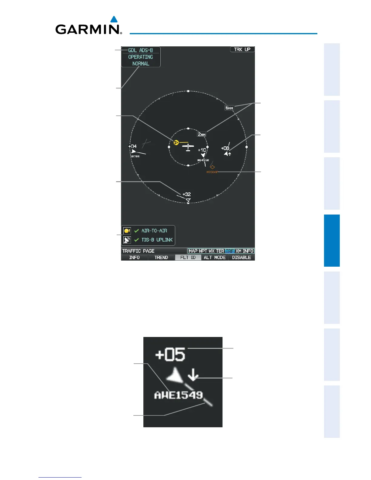 The Flight IDs of other aircraft (when available) can be displayed on the Traffic Page.