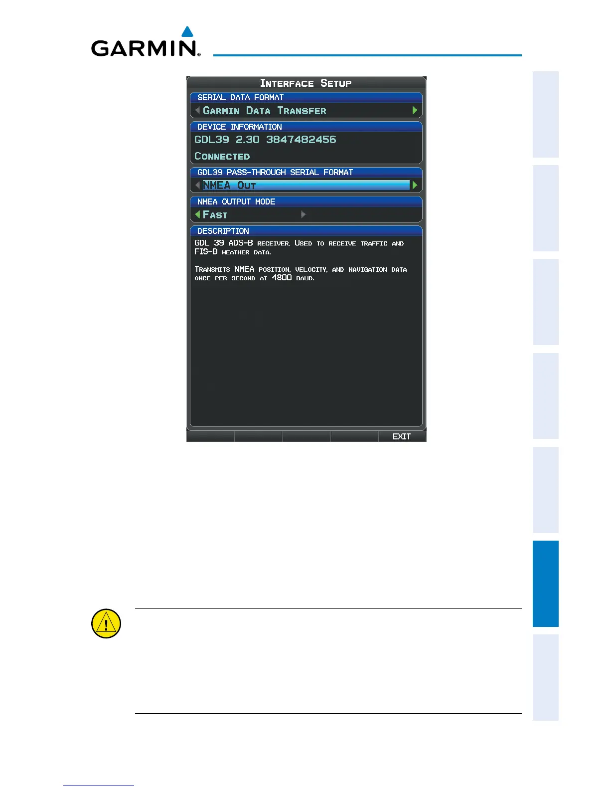 Never remove power from the GPSMAP 695/696 or GDL 39 during a