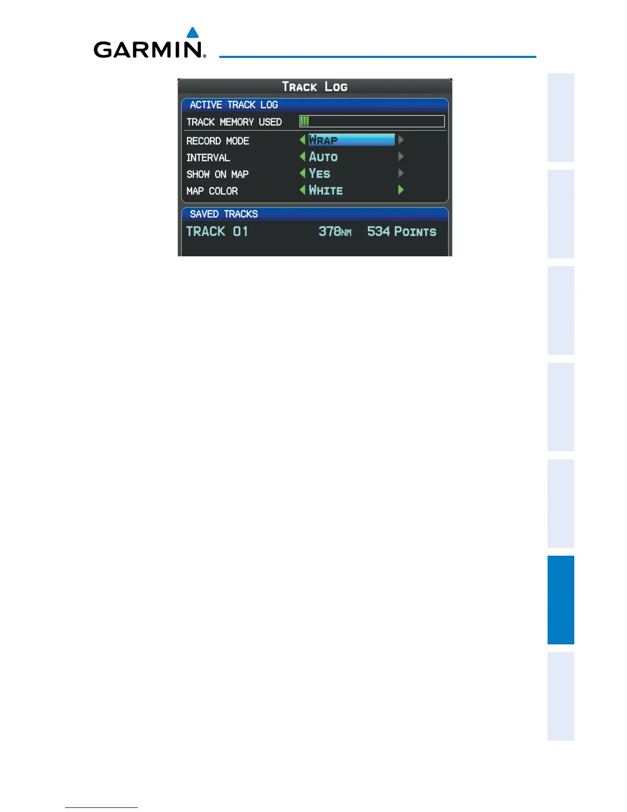 Turn or move the FMS Joystick to select ‘Track Log’ from the Main Menu,