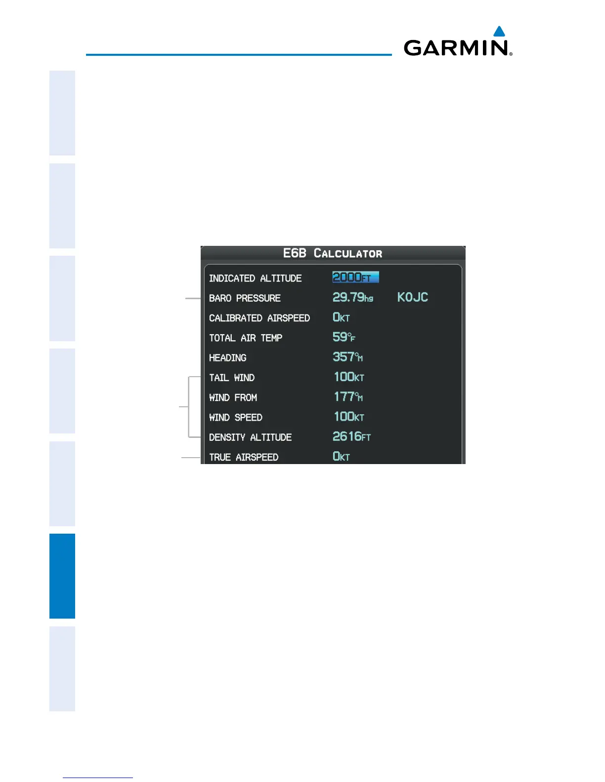 Turn or move the FMS Joystick to highlight ‘E6B Calculator’, and press the