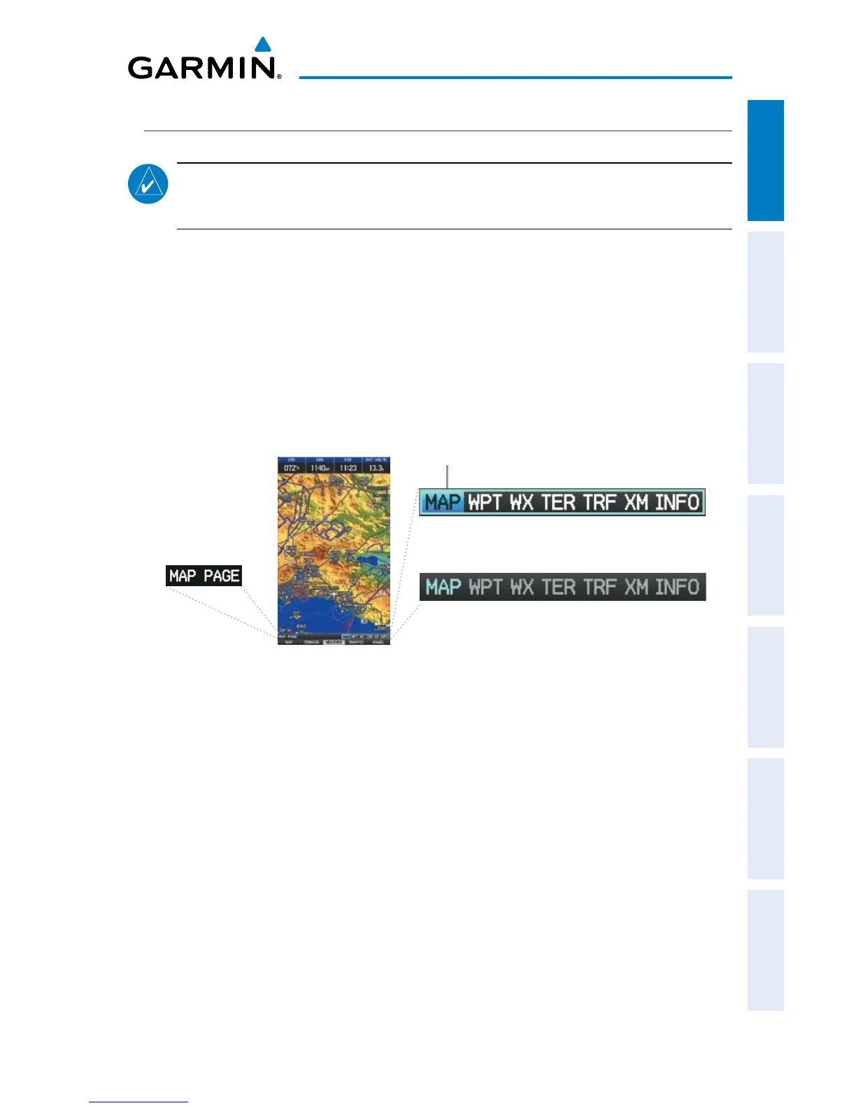until the desired page is selected (MAP, WPT, WX,