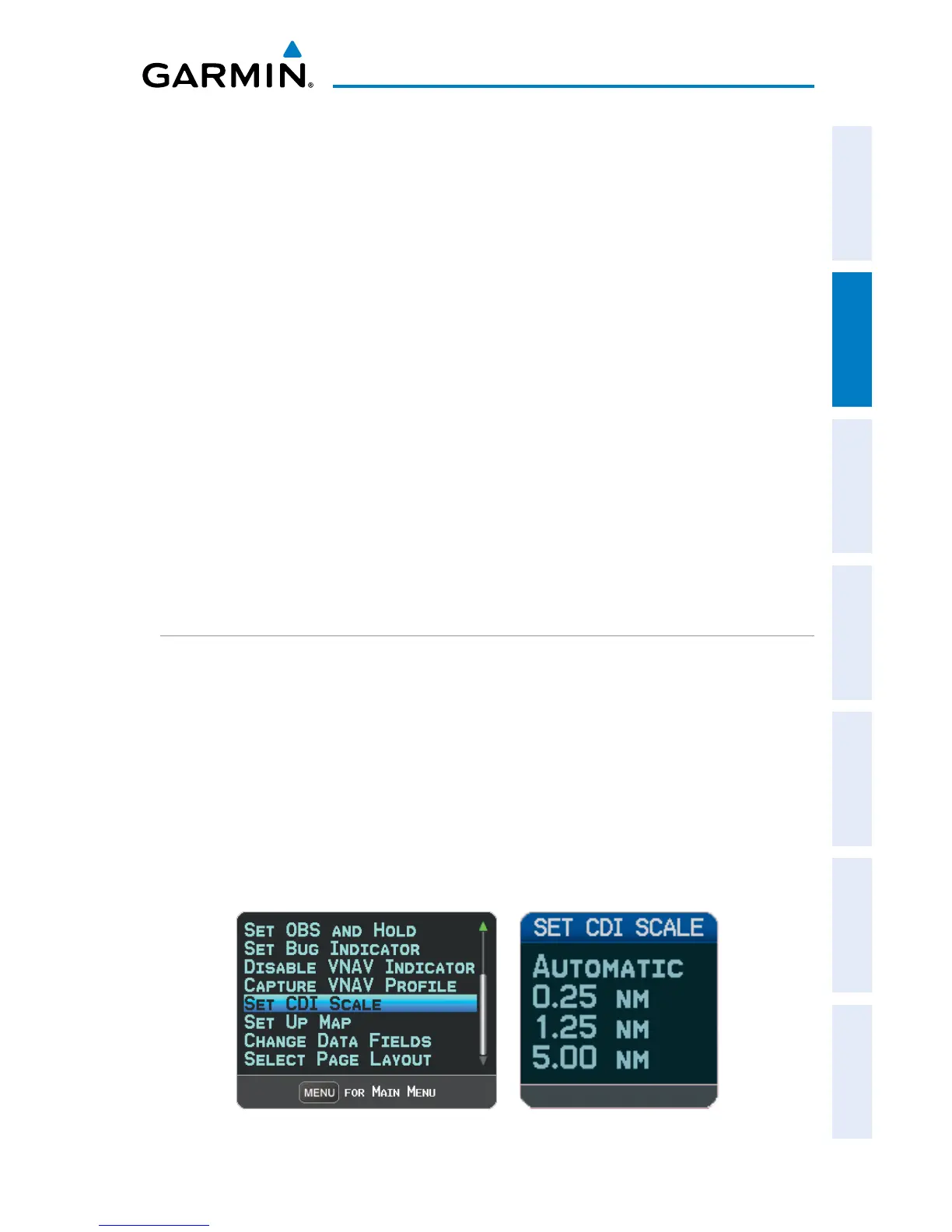 Turn or move the FMS Joystick to highlight ‘Set CDI Scale’, and press the