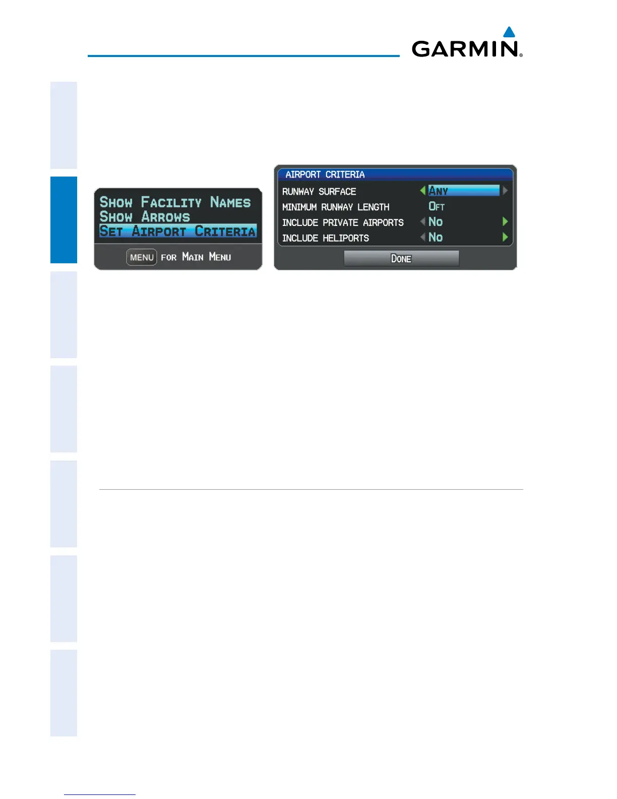 Turn or move the FMS Joystick to select ‘Set Airport Criteria’ from the Page