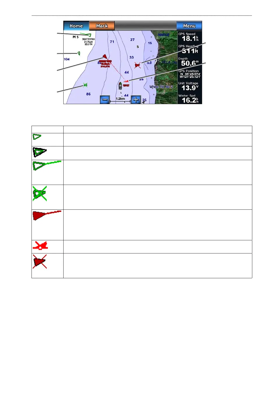 moving, a projected course line does not appear. Changes in the speed, the course over ground, or