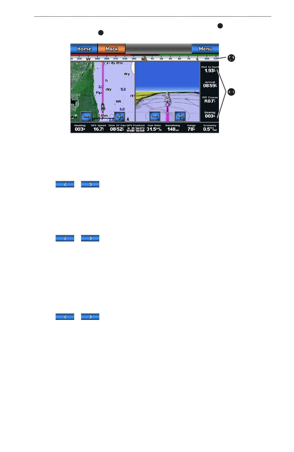 • Select > to show waypoint velocity made good (VMG) when navigating a route