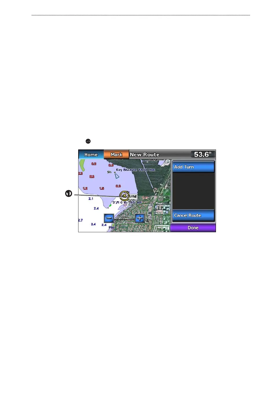 5. Select . The chartplotter marks the position of the turn with a waypoint.