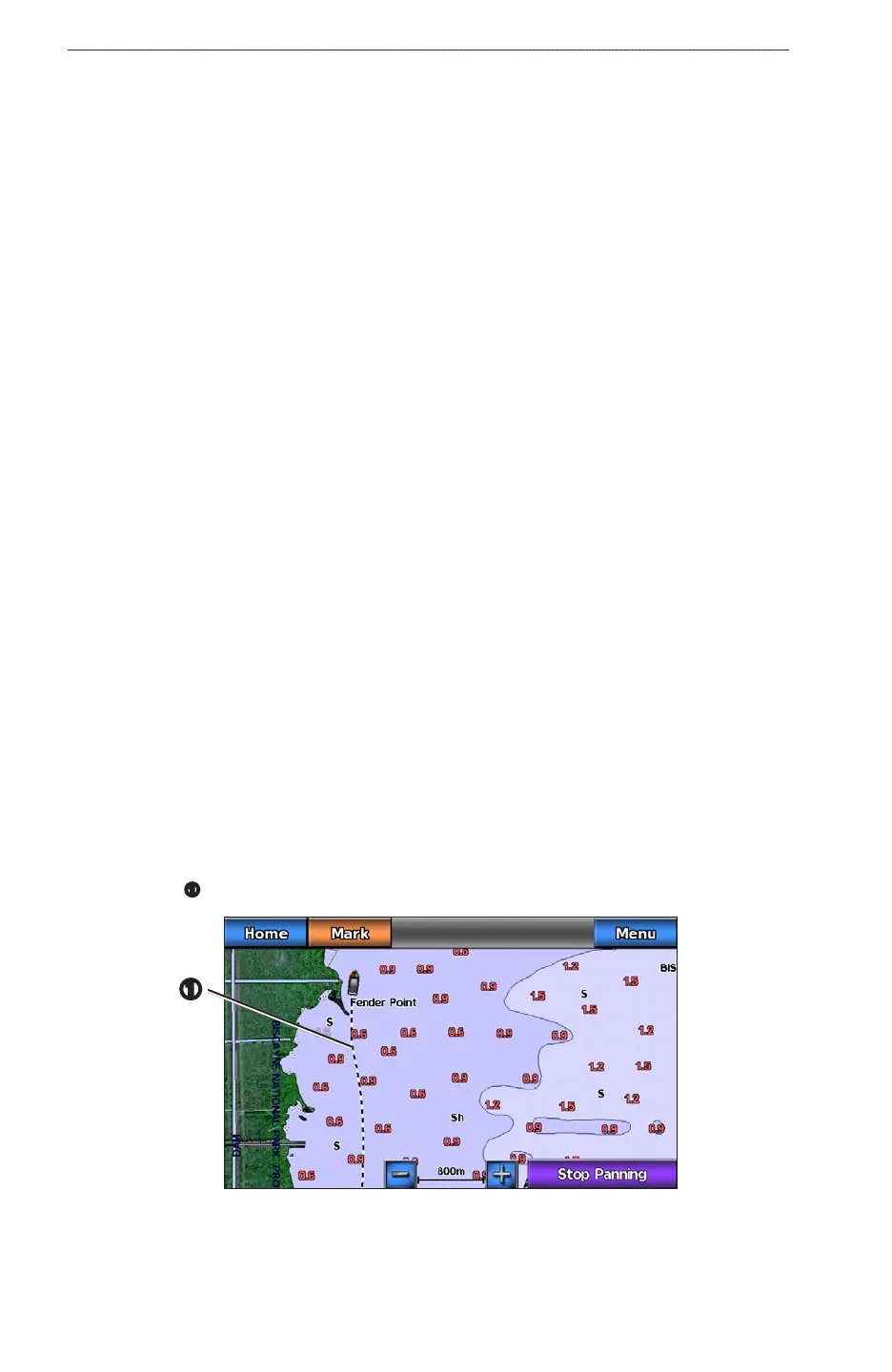 8. Follow the magenta line, steering to avoid land, shallow water, and other obstacles.