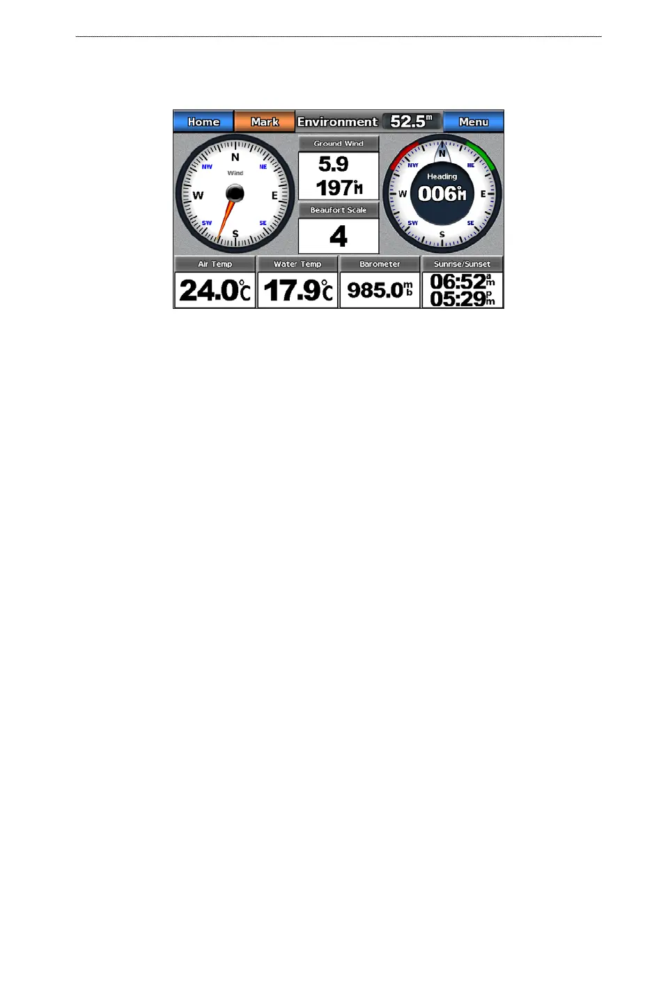 • Select > to set the wind gauge to rotate to match the orientation of the compass