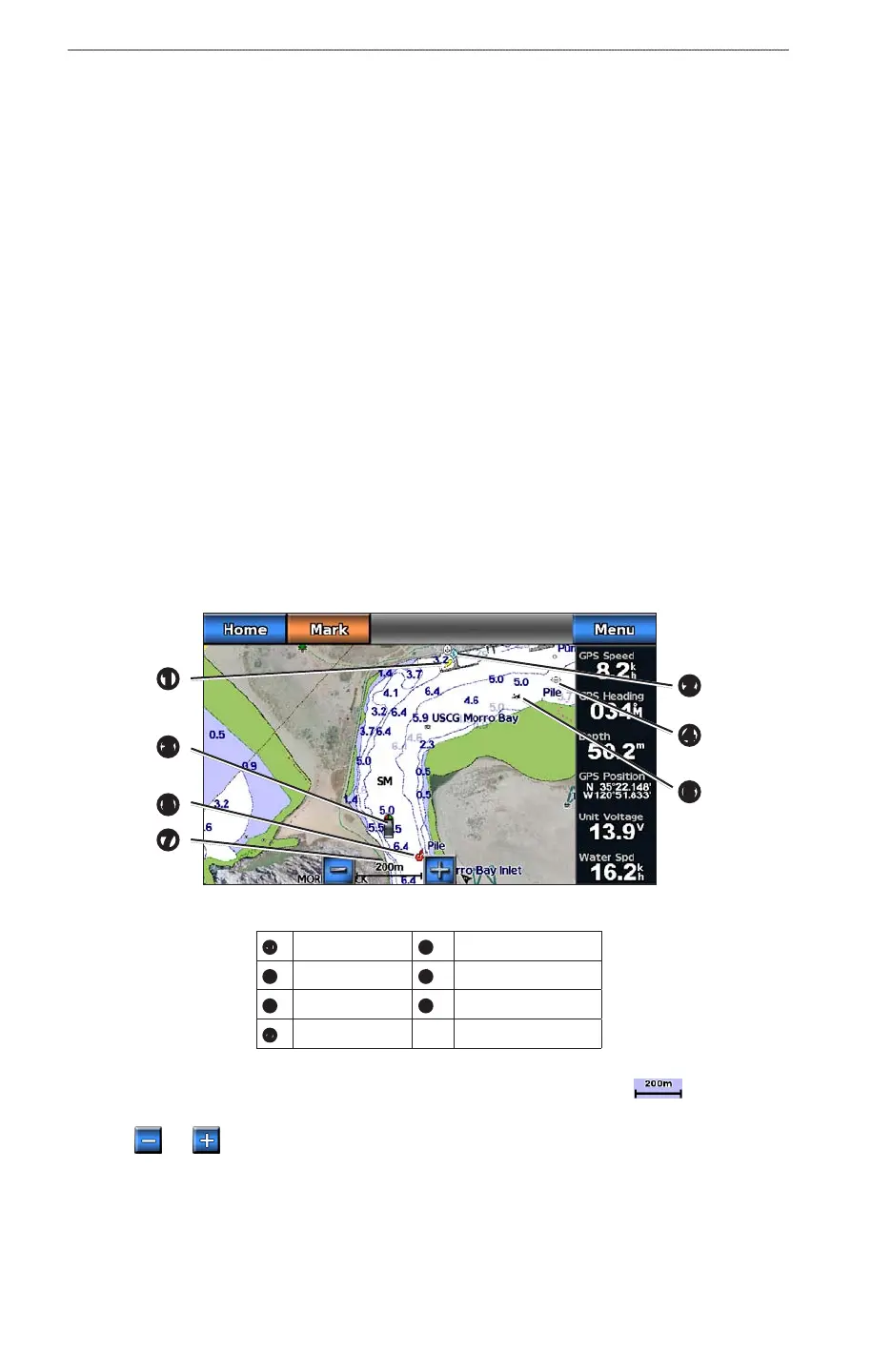 Use the Navigation chart to plan your course, to view map information, and as a navigational aid.
