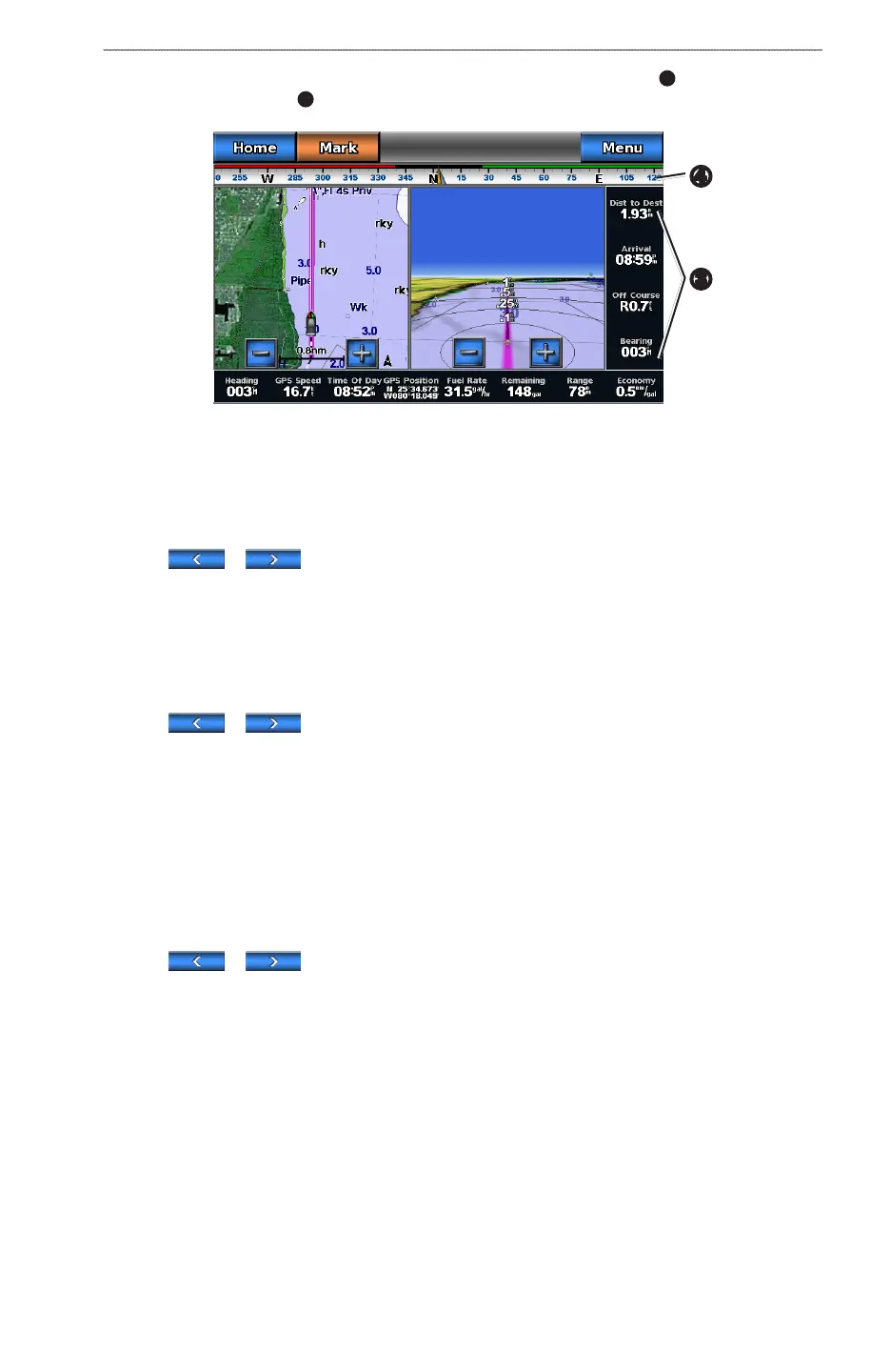 • Select > to show waypoint velocity made good (VMG) when navigating a route