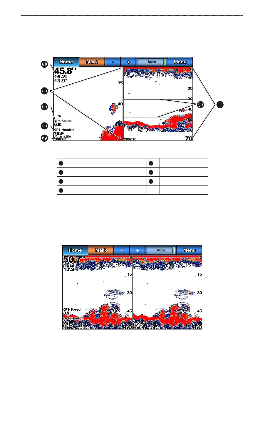 : The split-frequency sonar view requires the use of a dual-frequency transducer.