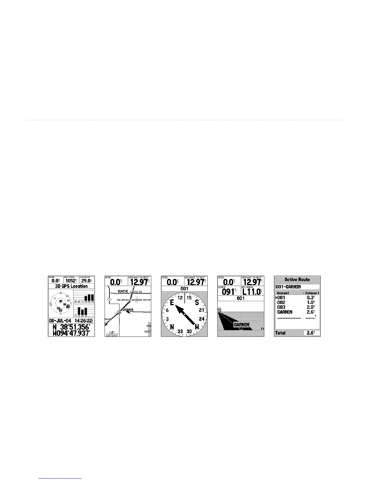 Active Route page. You can cycle through these pages by pressing either the PAGE or QUIT keys.