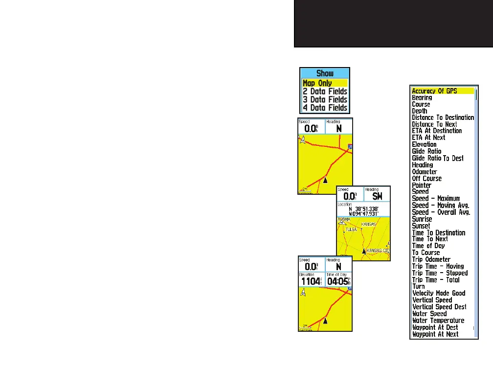2. Observe the sub-menu options: “Map Only”, “2 Data Fields”