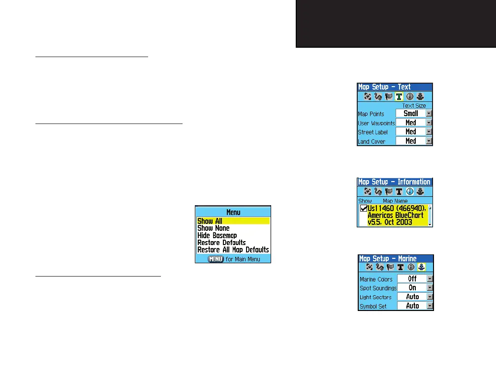The last page of the Map Setup is the Marine Settings Page. Use this