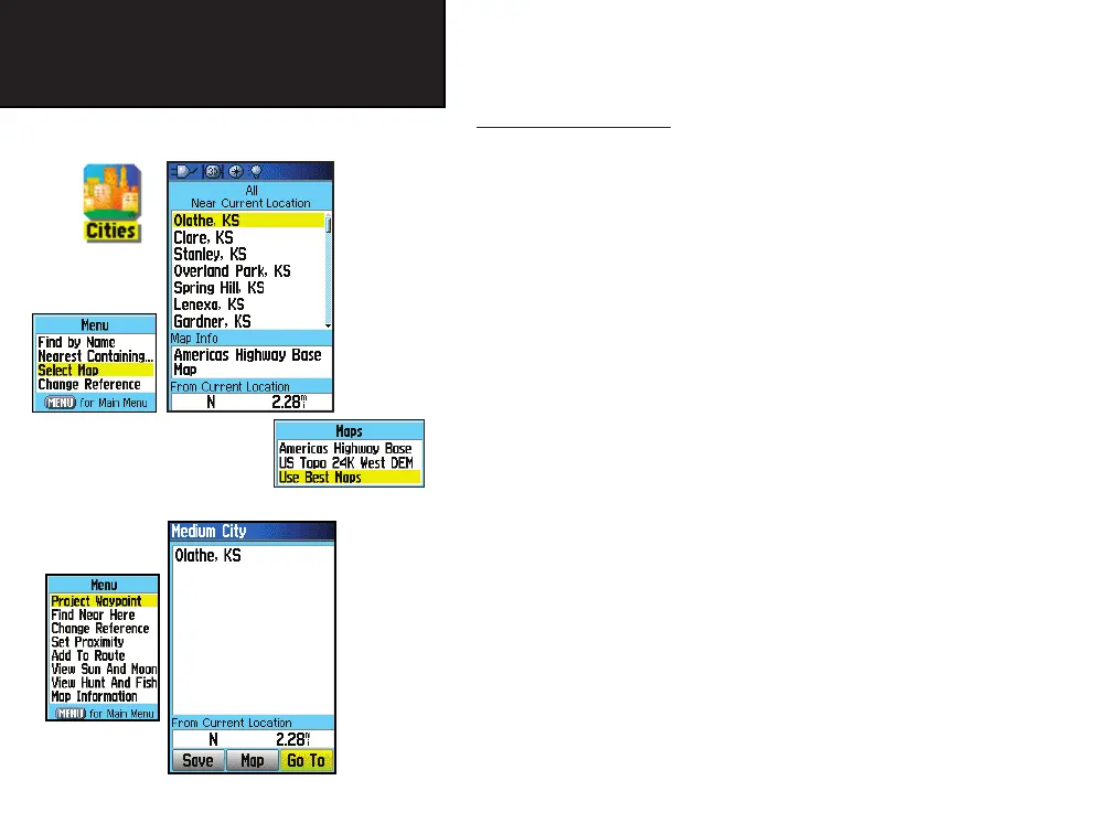1. Use the ROCKER key to select the ‘Cities’ option, then press it