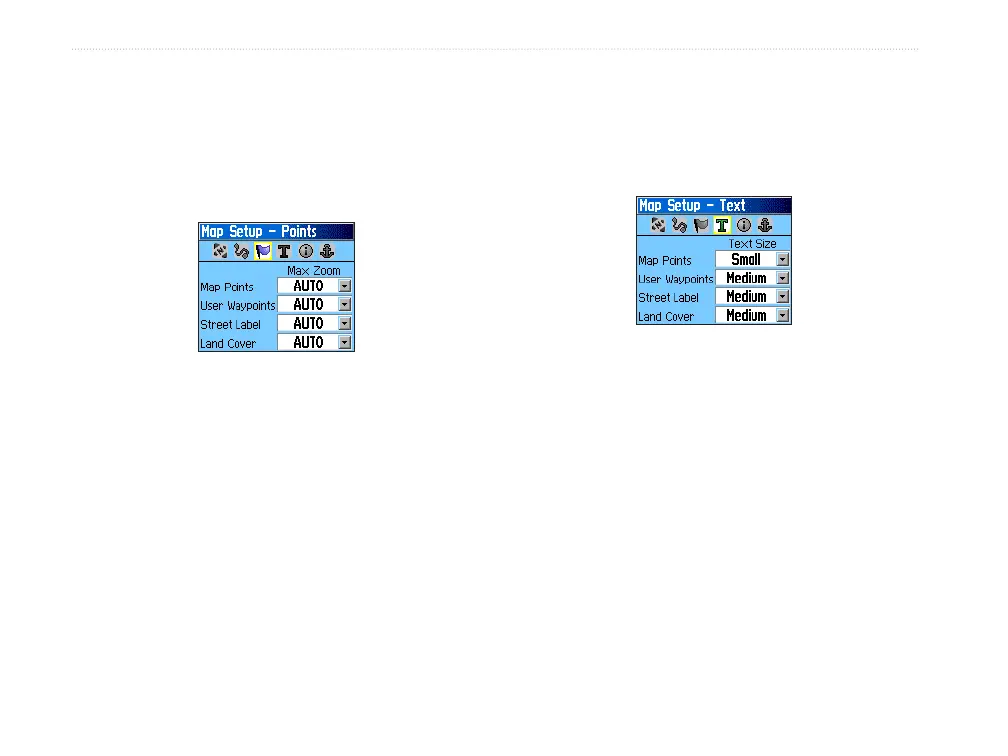 Use the Map Setup—Text Page to select the text size
