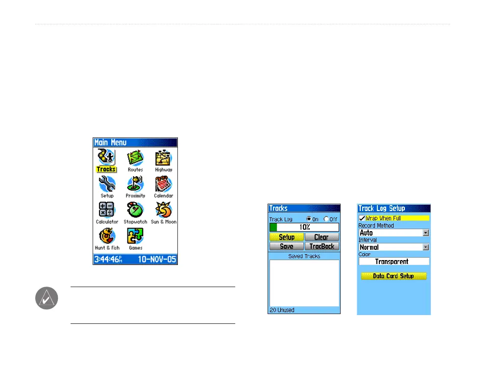 ENTER pour afcher la page Track Log