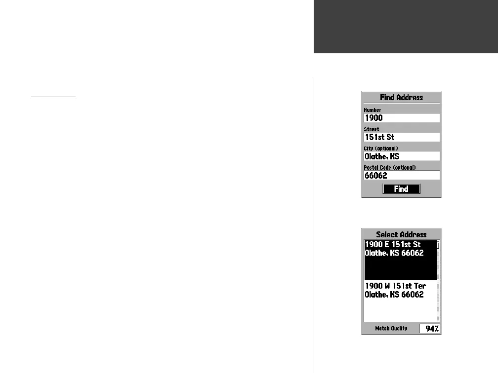addresses is loaded in the unit. When ‘Addresses’ is selected, the Find Address