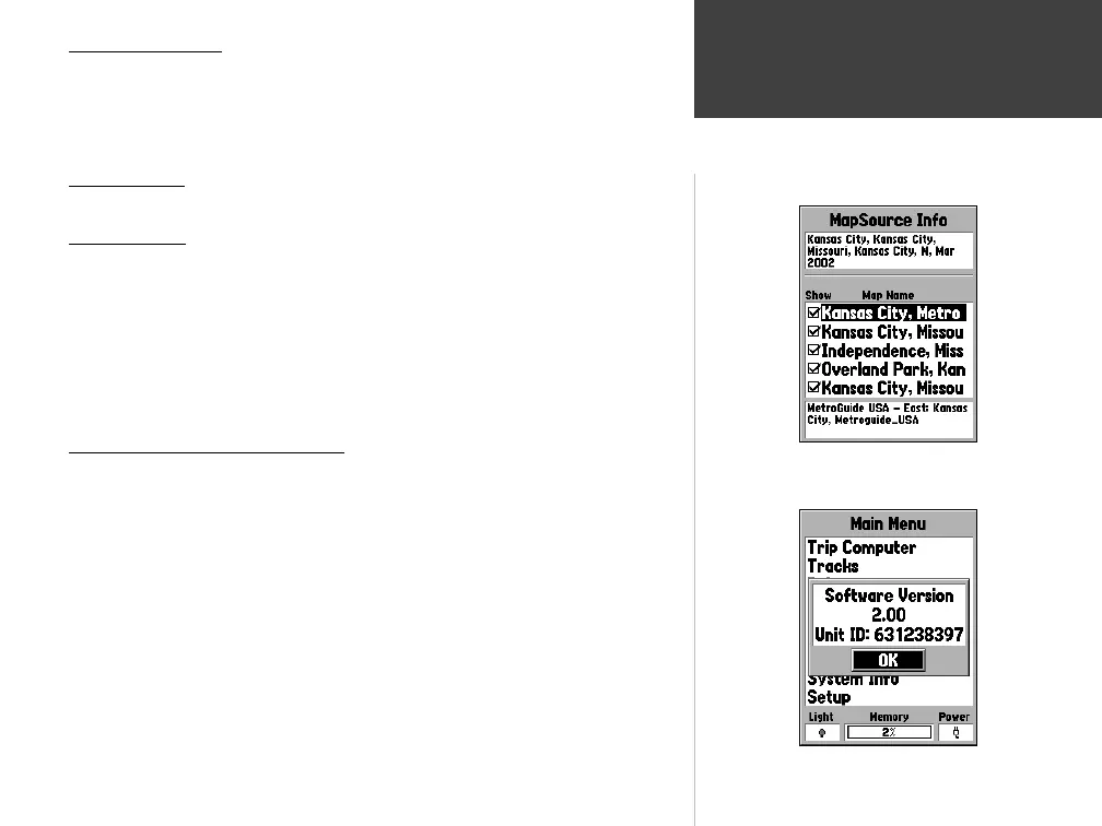 box, place the highlight over the MapSource Item then press ENTER.