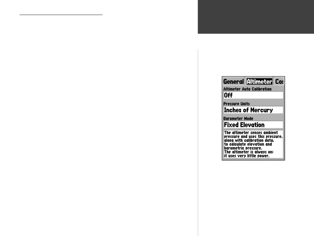 Altimeter Auto Calibration is On, the unit will use GPS elevation to continu-