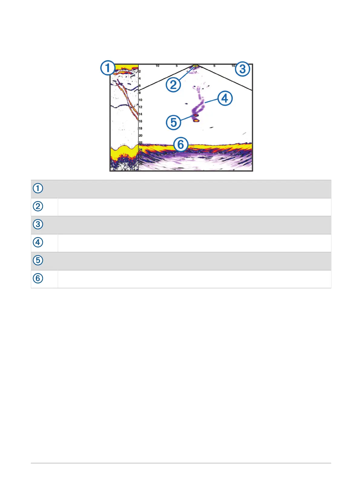 This sonar view shows a two-dimensional view of what is below the boat and can be used to see a bait ball and