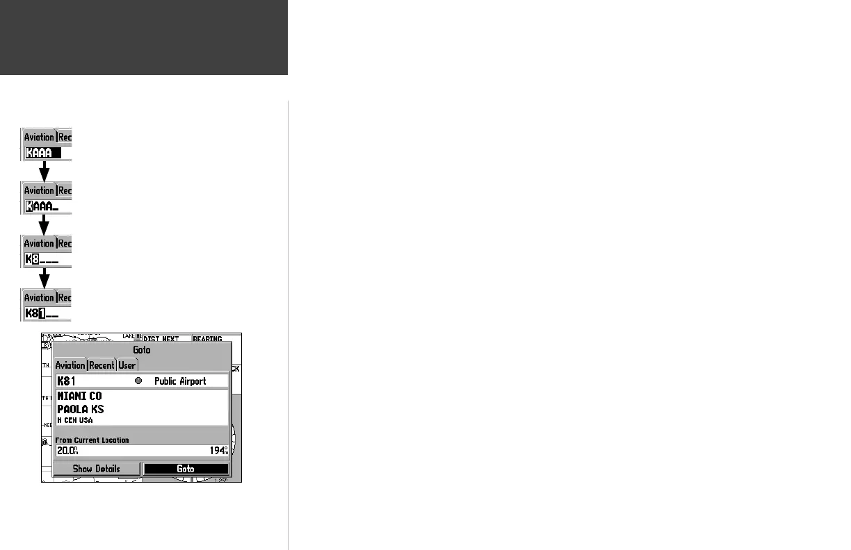 FIELD— The location on a page (such as “waypoint name fi eld”, shown at left) where a group of