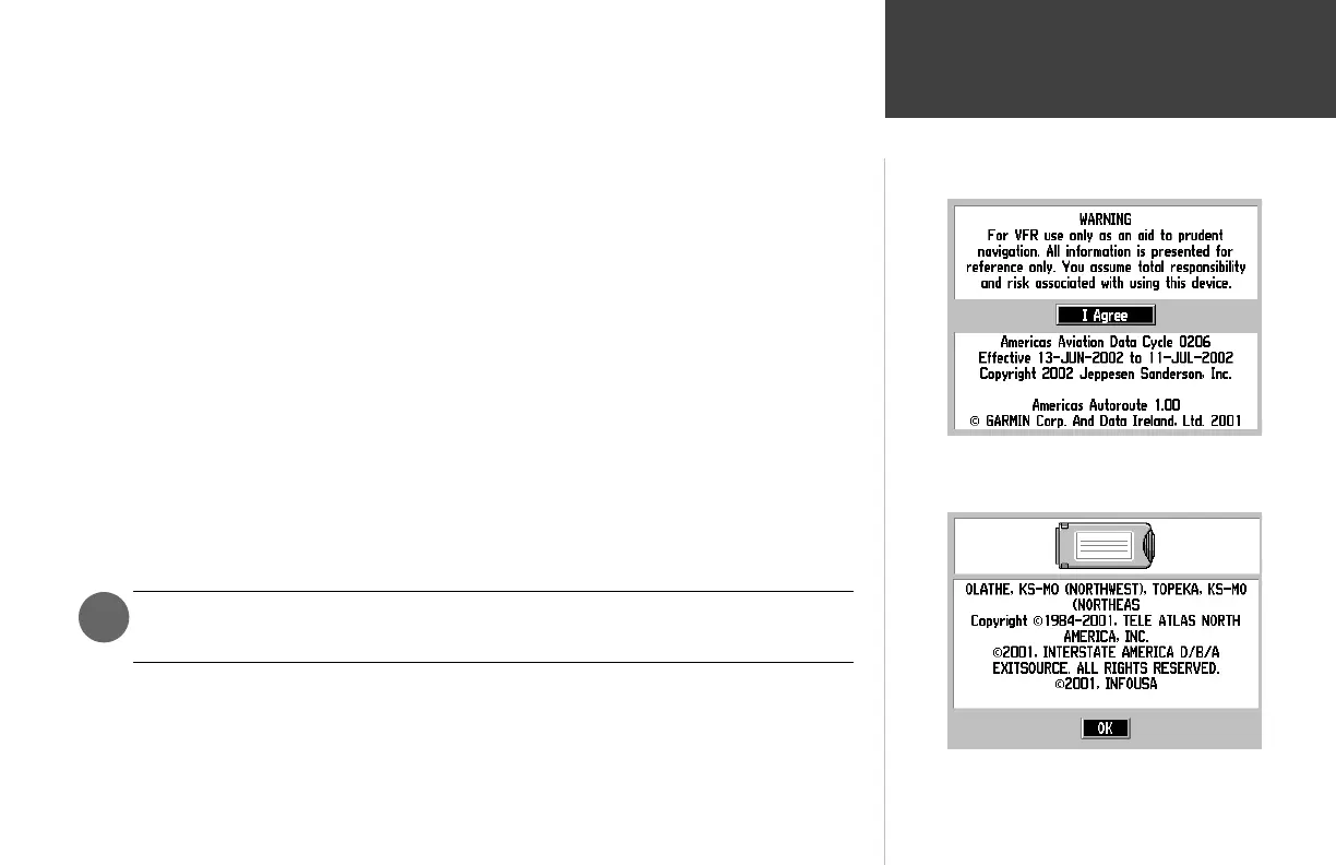 database and a warning that the GPSMAP 196 is for VFR use only.