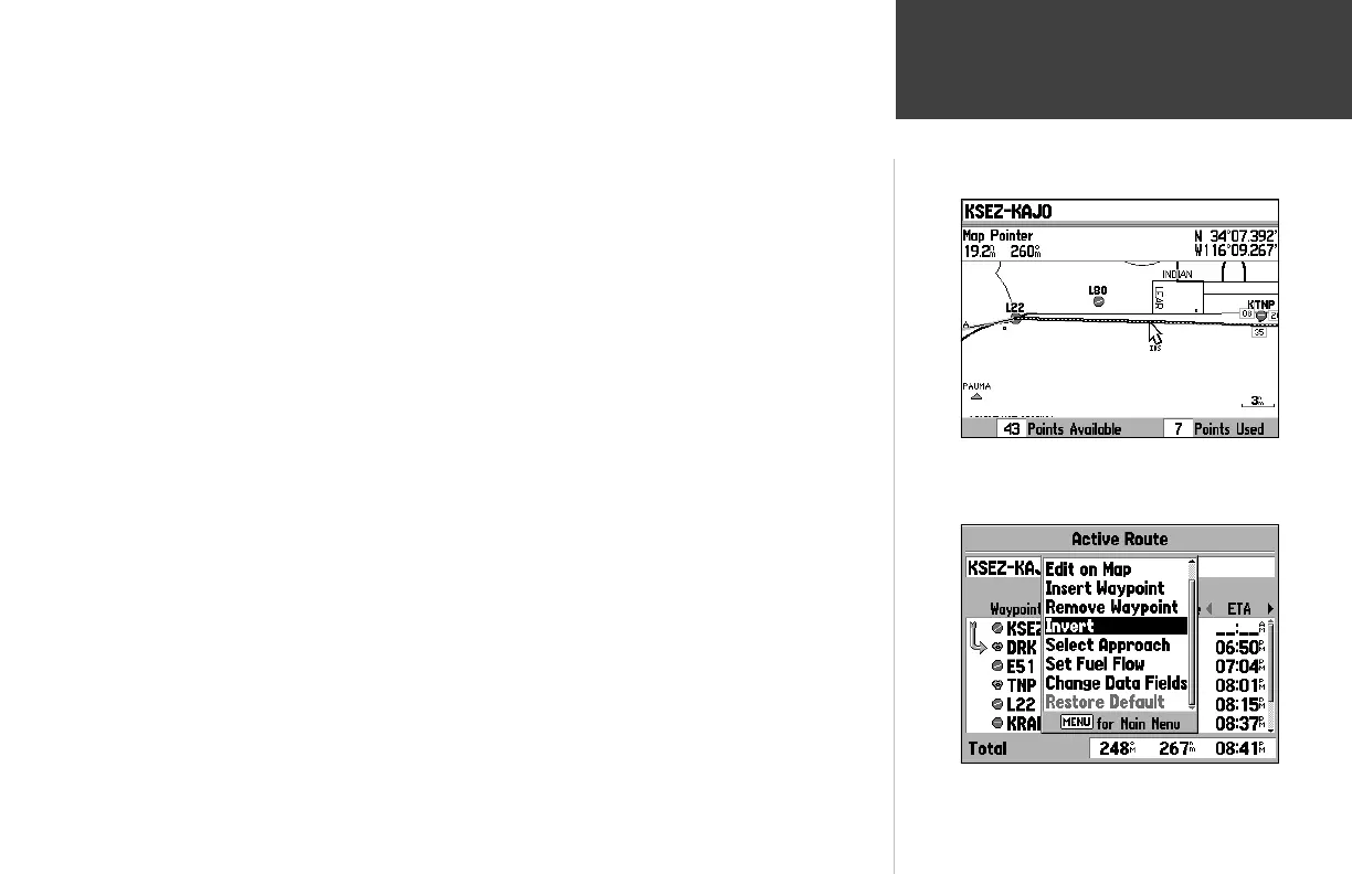 • Invert— reactivates the current route in reverse order and navigates from the end waypoint back to